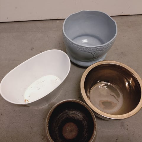Små hvite blomsterpotter i keramikk, 2 stk. Airpods ved siden bare for å vise størrelse