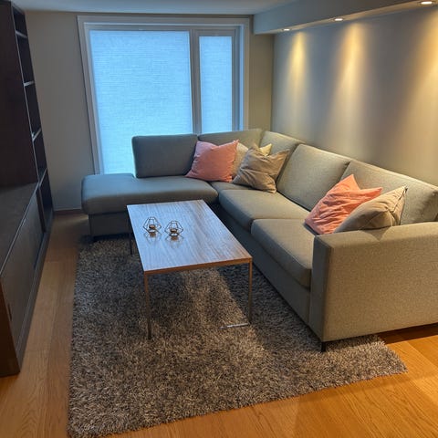 God sittekomfort og dype sitteputer. Brukt, med noe normale bruksspor, men fortsatt mye bruk igjen.
