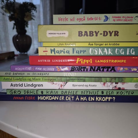Bøkene er på norsk og egner seg som høytlesning eller egenlesning for barn.