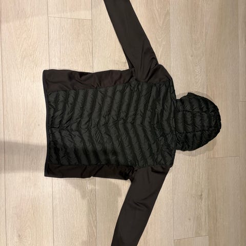 Peak Performance jakke for herre i størrelse L. Jakken er grønn og fylt med dun. Den har fast hette med snøring, hel glidelås i front og flere glidelåslommer, blant annet en brystlomme. Passer som ytterjakke til hverdagsbruk og utendørsaktiviteter i kjøligere vær.