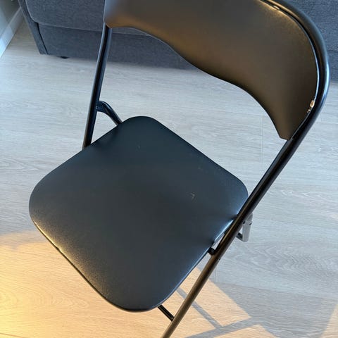 To klappstoler fra Jysk selges da de bare ble stående i boden etter kun et par bruk. Vi har brukt dem som ekstrastol når vi har for mange på middagsbesøk.