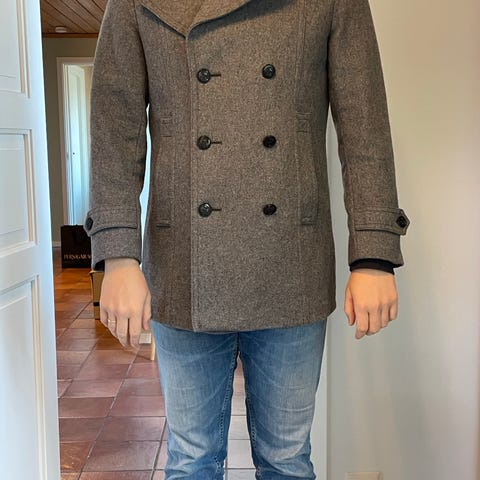 Den er god som ny og har ingen bruksmerker eller slitasje. Ytterdelen består av 100% ull og har lining av viskose. Frakken bærer preg av å være laget med høye standarder og utmerket kvalitet. I tillegg til det er den laget i Jugoslavia, noe som gjør den ganske unik.