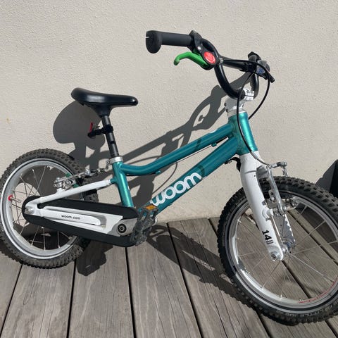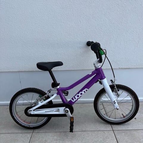 Selger en Woom sykkel i størrelse 2 (14", passer ca. 3–5 år / 95–110 cm).