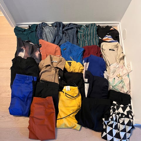Har laget sammen en pakke med klær, som jeg ikke bruker lenger. Følger med masse gensere, cardigan, bukser, singleter og t-skjorter i størrelsen xs,s og m