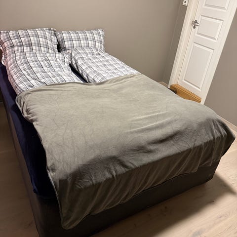 Serdeles lite brukt gjesteseng av type Odel kontinentalseng i størrelsen 160x200 cm. Fremstår som ubrukt og ny. Sengen har en total lengde på 200 cm, bredde på 160 cm og høyde på ca. 58,5 cm. Fargen er kull, med mørk tekstil på underdelene og lys overmadrass. Kontinentalsengen passer som dobbeltseng og gir et helhetlig liggeareal på 160x200 cm. Må hentes.