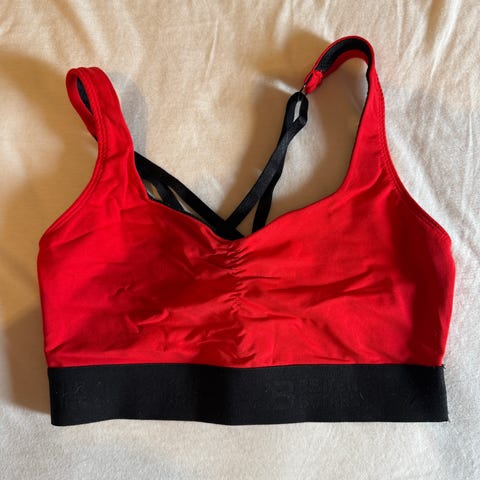 Selger 2 stk ubrukte sports BH-er, i str L, C/D cup i mørk rød og mørk grønn. Kan hentes hvis ønskelig.