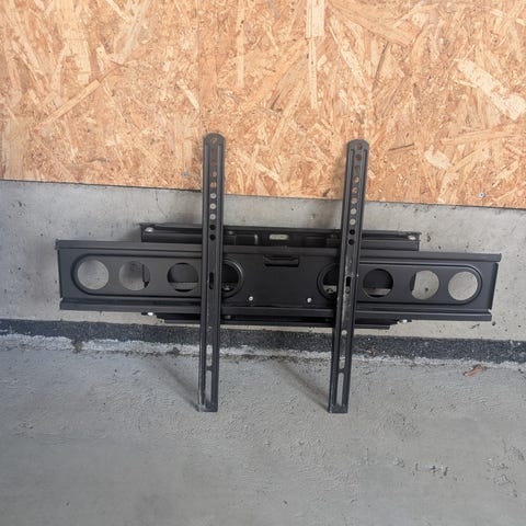 Samsung veggfeste til TV. Veggfestet er beregnet for montering av flatskjerm-TV på vegg. Det har justerbare vertikale og horisontale skinner med flere festehull for tilpasning til ulike VESA-mønstre. Egnet for større TV-er. Brukt på en 65 tommer, men kan brukes opp til 75 tommer. Gi bud!