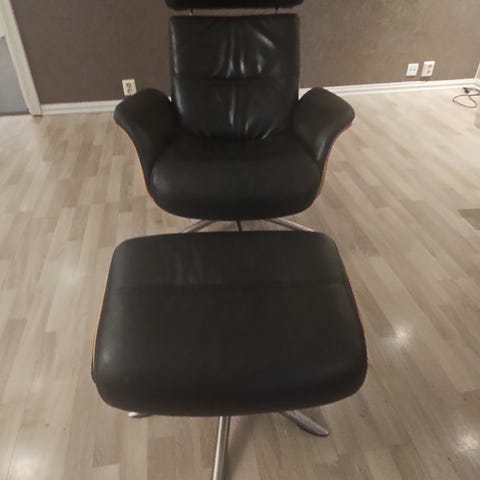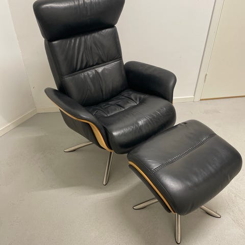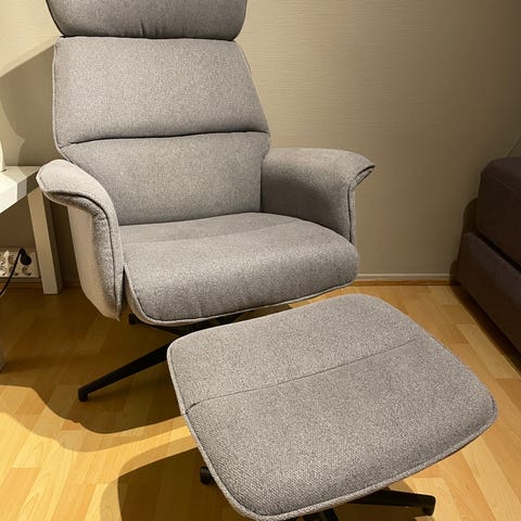 Selger Driva hvilestol med tilhørende skammel, kjøpt hos Fagmøbler.