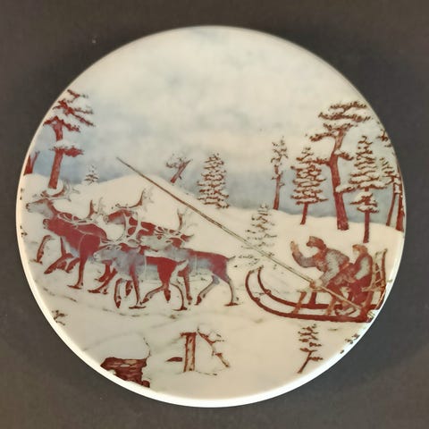 Miniatyrplatte fra Arabia, Finland. Motiv "Roddarna" Design og signert Anita Rantanen Siewers