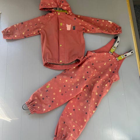 Pent brukt regnsett fra Kattnakken i str 110. Ingen hull.