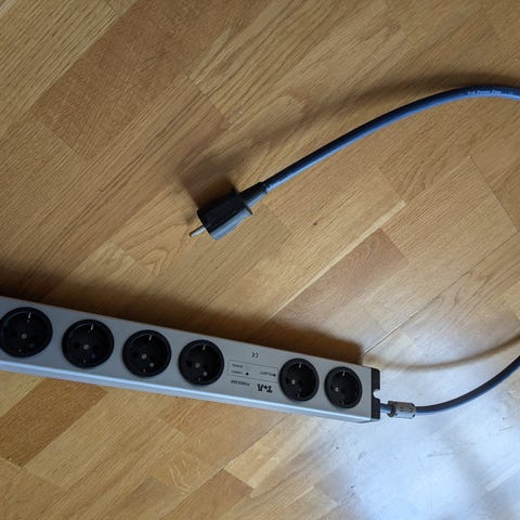 Digitus 19" Network Cabinet Socket Outlet Strip strømskinne med 8 schuko-uttak. Beregnet for montering i 19" rack/nettverksskap. Spenning 250 V AC, 50/60 Hz, maks. 16 A / 4000 W. Leveres med fast tilkoblet jordet strømkabel i svart farge. Egnet for strømfordeling til utstyr i nettverksskap og lignende installasjoner.