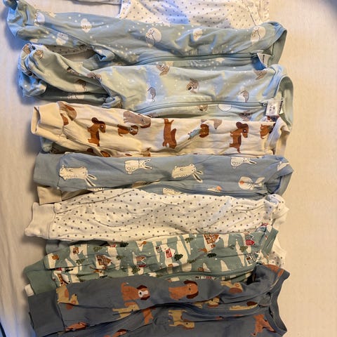1 pysj med korte ermer og 5 med lange ermer og ben.