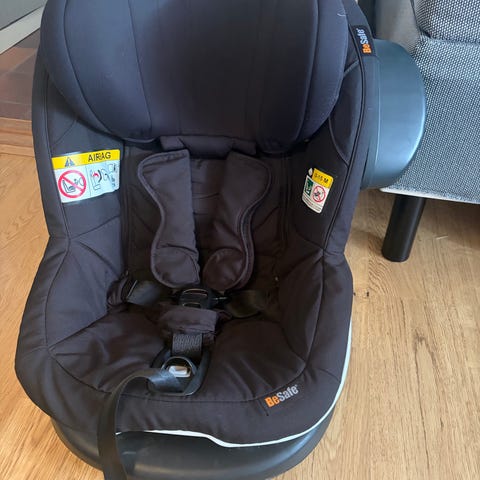 BeSafe izi Modular Rf X1 i-Size, svart, med beltesamler og base. Pent brukt, kjøpt inn slik at besteforeldre kunne hente og bringe barnebarn, stol og base er ikke brukt så frekventert, liten slitasje. Maks. vekt: 18 kg. Alder: fra ca. 6 mnd - 4 år. Barnesetet har intern 5-punkts sele og justerbar hodestøtte. Setet er polstret for økt komfort og har sidebeskyttelse.