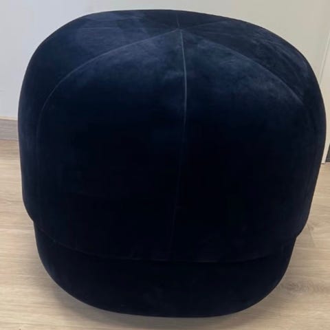 Puff Circus, blå velour fra Normann Copenhagen, Small, Mål B46 x D46 x H40. Lite/pent brukt. Selges kr 2990. Kan sendes mot at kjøper betaler porto. (Har 2 stykk dersom ønskelig)