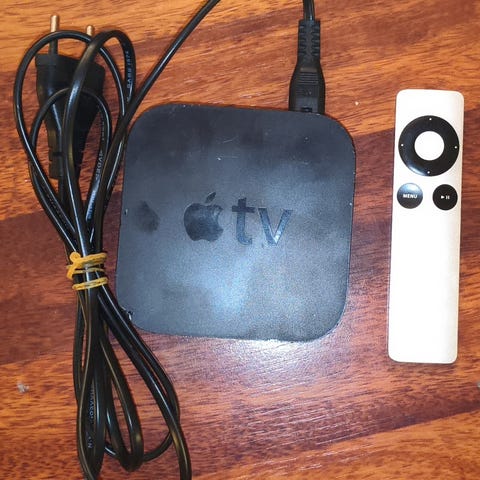 1. gen Apple TV med fjernkontroll og strømkabel