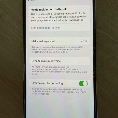 Telefonen har max 77% batteri 🔋 kapasitet.