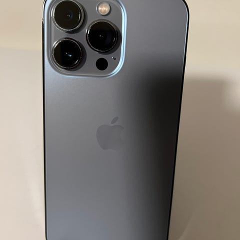 Apple iPhone 13 Pro mobiltelefon med 256 GB lagringskapasitet. Modellen har stor skjerm med frontkamera i øvre kant og trippelkamera på baksiden. Fargen fremstår som grønn. Egner seg for bruk til blant annet telefoni, meldinger, nettlesing, apper, foto og videoopptak.