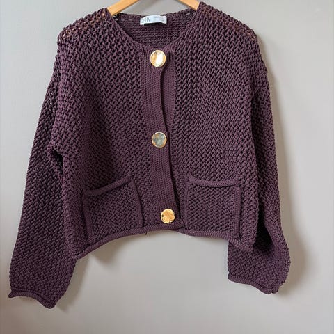 Lapp er tatt av, men cardiganen er aldri blitt brukt.