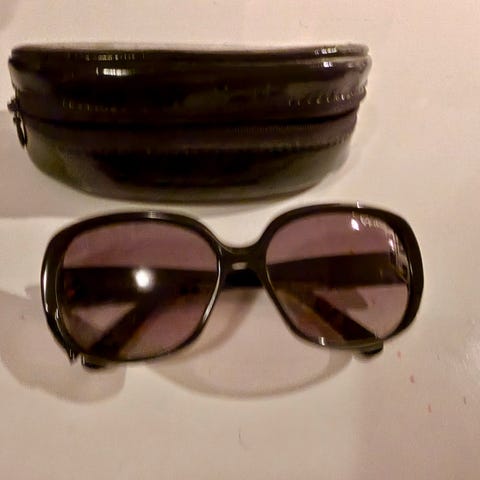 Fendi solbriller unisex med markante logo-detaljer på stengene. Rammen er i plast med helfarget, mørk front og dekorative metallfargede Fendi-mønstre på sidene. Passer til både menn og kvinner. Solbrillene egner seg til daglig bruk og gir skjerming mot sollys. Nøyaktig modellbetegnelse og størrelse er ikke oppgitt.