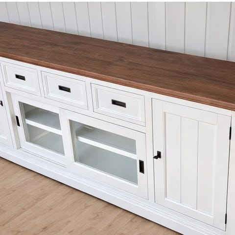 Møbelet har flere skuffer og skap, og gir god oppbevaringsplass. Passer perfekt som TV-benk eller skjenk.