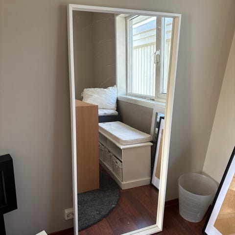 IKEA Nissedal speil i helfigur med hvit ramme. Må hentes