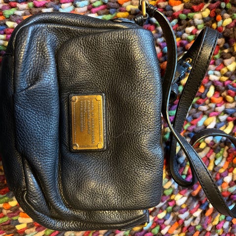 Vesken har doble hanker og avtakbar/justerbar skulderrem. Lukking med snøring og metall-detaljer i gullfarge. Innvendig er vesken fôret med stoff med Marc Jacobs-logo og har flere lommer for oppbevaring av mindre eiendeler. Egner seg til daglig bruk og har plass til det meste man trenger i hverdagen.