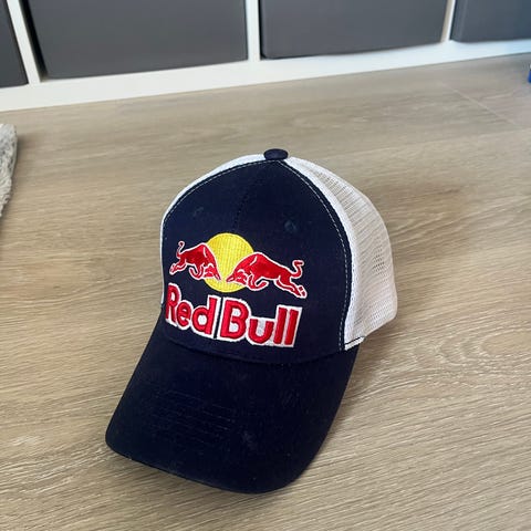 Selger en pent brukt, klassisk sort Red Bull caps – perfekt for deg som vil se rask ut selv når du sitter stille 😎