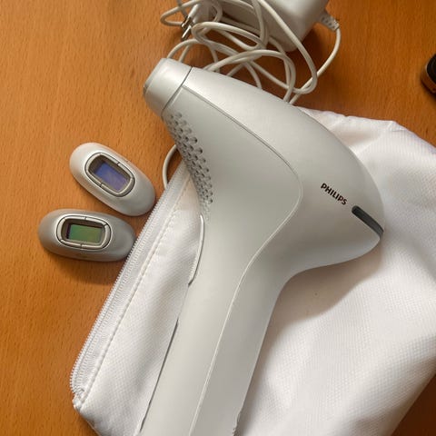 Silk’n FaceTite ansiktsapparat i hvit farge. Elektrisk hudpleieapparat for bruk i ansiktet. Leveres i etui med strømadapter og brukerveiledning, slik det vises på bildene. Apparatet er beregnet for hjemmebruk innen hudpleie og ansiktsbehandling.