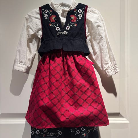 Festdrakt og skjortebody fra Nameit selges samlet. Pent brukt, eneste bruksmerke er to små nupper i det blå stoffet som merket på bilde nr 5. Kjolen er i 80 cm, har elastikk i midjen. Skjortebodyen er i 86 cm, den er litt liten i størrelsen, brukt sammen😊