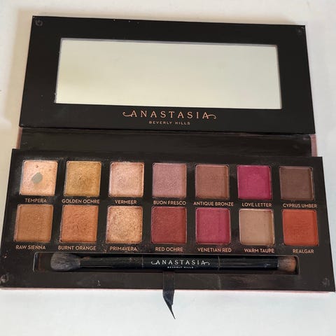 Urban Decay Naked Cherry øyenskyggepalett med flere nøytrale og rødlige nyanser. Paletten inneholder både matte og shimmer-farger i varme toner, egnet til øyesminke til hverdag og kveld. Leveres i et etui med speil og dobbeltsidig øyenskyggekost.