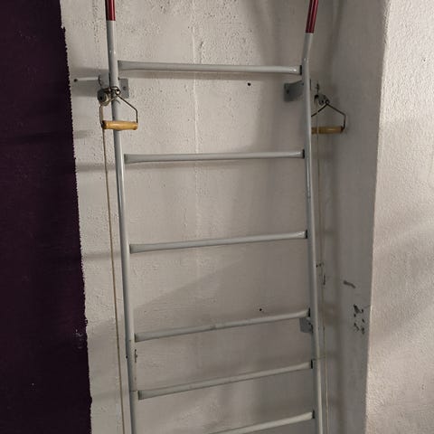 Ribbeveggen er beregnet for hjemmetrening og kan brukes til ulike øvelser med egen kroppsvekt. Den monteres på vegg og har flere ribber som gir mulighet for blant annet strekkøvelser, styrkeøvelser og mobilitetstrening.