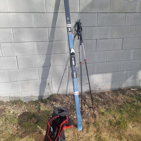 Madshus smørefrie fjellski med stålkanter, bindinger og fjellsko - 185 cm lange.