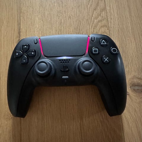 Sony kontroller til Playstation 5 i lilla og svart. Kontrolleren leveres i et hardt beskyttelsesetui med plass til ekstra tilbehør. Etuiet har glidelås og bæreløkke for enkel transport og oppbevaring. Kontrolleren er trådløs og beregnet for bruk sammen med Playstation 5-konsoll.