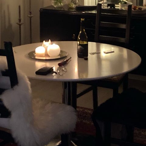 Vi ønsker å selge dette spisebordet, da vi har kjøpt et nytt. Bordet har vinklet brukt tidligere, og har en del riper i overflaten, som du kan se om du er nærme. diameter er 110cm. Må hentes.