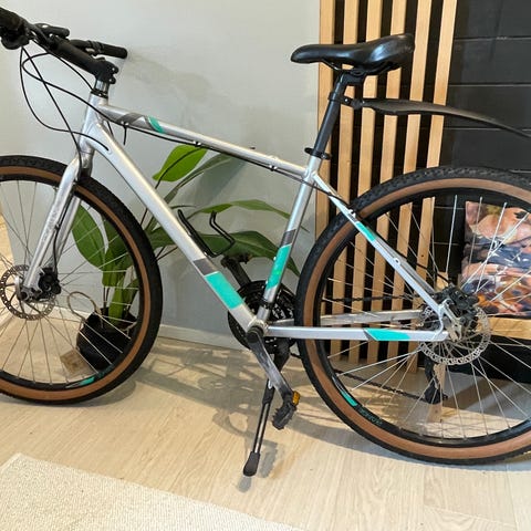 Alt originalt bortsett fra setepost/klemme og hele bakre hjul som må erstattes med kompatibelt utstyr :