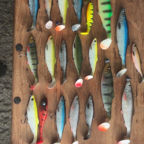 Sebile Magic Swimmer Soft 20 cm er ikke lenger å få tak i på markedet. Selges for kr. 62,50,- pr. stk. inkludert ekstra kropper og vektsystem.