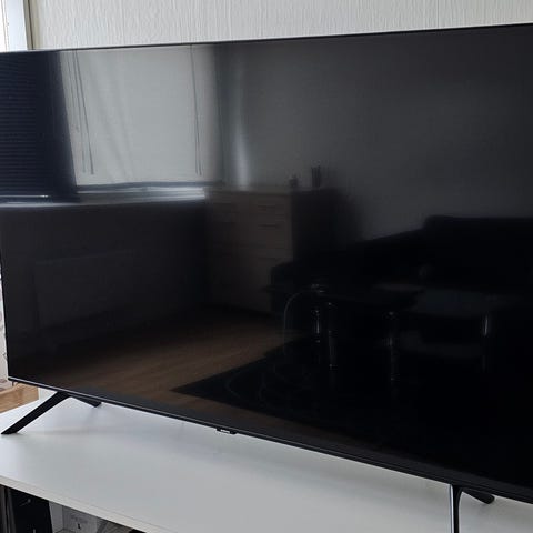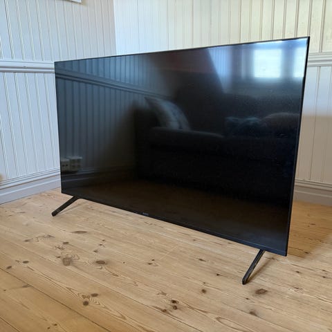 TV-en fremstår som tilnærmet ny, uten riper eller feil, og har stått i et røykfritt hjem