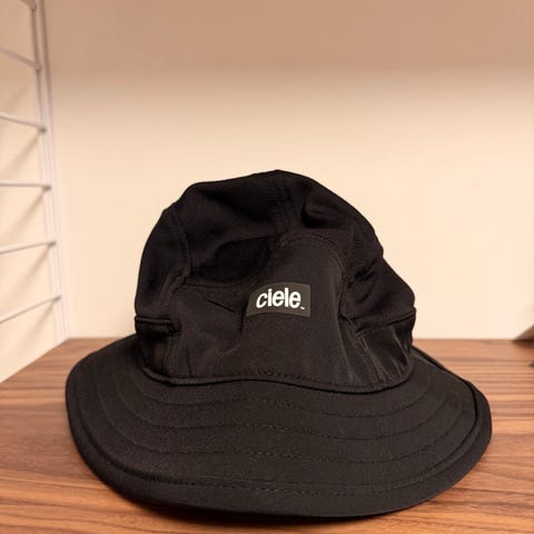 Ciele Athletics løpecaps i størrelse M. Butikken som solgte den beskrev den som unisex, og etter jeg fikk den og brukt den litt er den nok for liten til meg. Passer nok bedre til folk som bruker small/medium. 56cm-ish