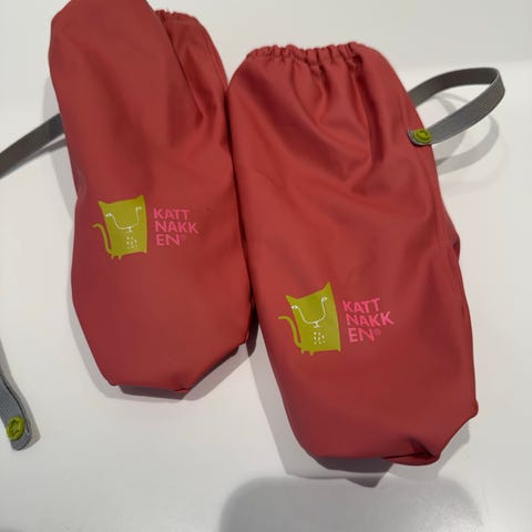 Lite brukte regnvotter fra Kattnakken str 3-4 år. På Innsiden er det fleece så barnet holder seg varm også. Hele og pene uten hull o.l
