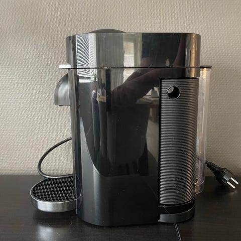 Svært lite og pent brukt Nespresso kapselmaskin i hvit og svart utførelse. Maskinen er beregnet for bruk med Nespresso vertuo next kapsler.