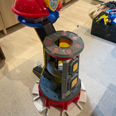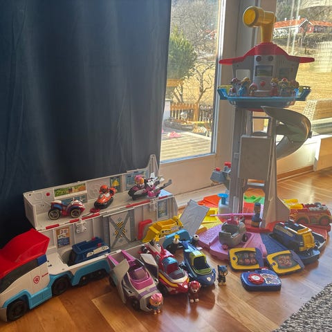 Paw Patrol lekesett med tårn og flere kjøretøy og figurer. Tårnet har flere nivåer, rampe og detaljer som etterligner utsikts- og redningstårn fra serien. Medfølgende småfigurer av karakterer og ulike kjøretøy som kan brukes sammen med tårnet.