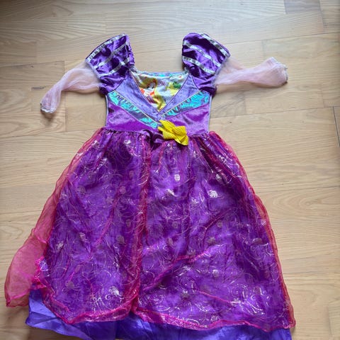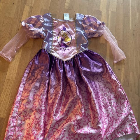 Rapunzel kjole med lilla prinsesse sko. Nesten ikke brukt.