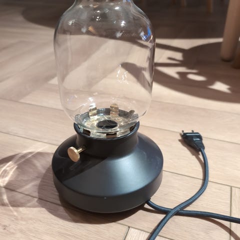 "Inspirert av tradisjonsrike oljelamper og stemningsbelysning som er myk og varm. Den synlige lyspæra etterligner en levende flamme og du kan justere lysstyrken med den innebygde dimmeren."