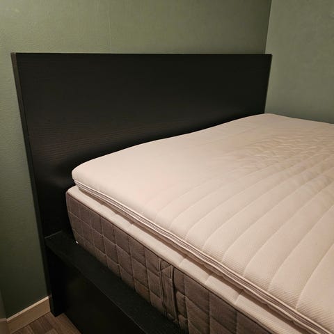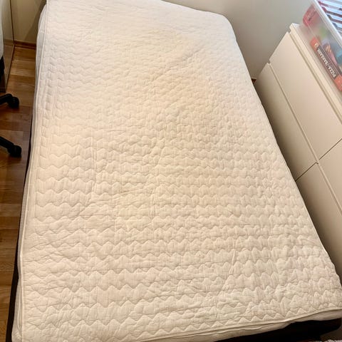 Jysk Vingan overmadrass i størrelse 160x200 cm. Overmadrassen er laget av polyeterskum som gir fast støtte og egner seg for daglig bruk. Høyden er ca. 4 cm. Trekket kan tas av og vaskes på 60 °C. Produktet er sertifisert etter OEKO-TEX Standard 100, som innebærer at tekstiler og fyllmaterialer er testet for skadelige stoffer.
