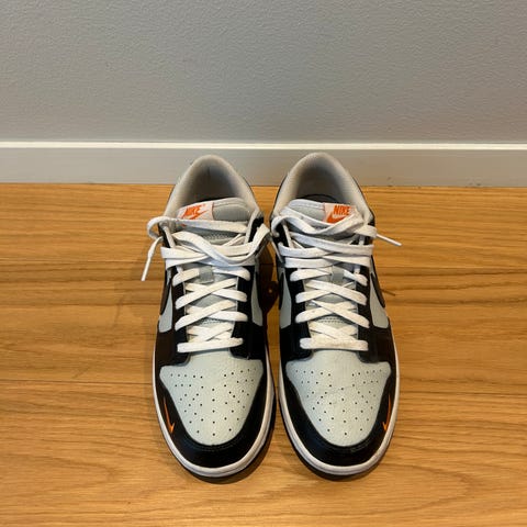Modellen har overdel i semsket materiale med flerfarget design i turkis, blå og brun, samt lys såle. Lav modell med snøring. Egnet som skating- og hverdagsko.
