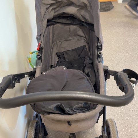 Beemoo barnevogn med tre hjul i svart farge. Vognen har et polstret sete med justerbare seler og frontbøyle. Den har stor kalesje og romslig varekurv under setet. Passer til ett barn og er egnet til hverdagsbruk og trilleturer på ulike underlag. Basert på bildene fremstår vognen som en trehjulsvogn/joggevogn-type med luft- eller skumhjul og enkel manøvrering. Som du ser er det ett lite hull på varenettet under vognen. Vognen er ellers strøken, og er brukt i tre mnd. følger med ubrukt regntrekk. Selges under halv pris
