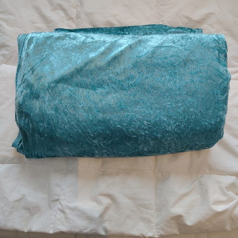 1,8 + 5,85 meter i nydelig blåfarge med nervøs fløyel. Perfekt som duk.
