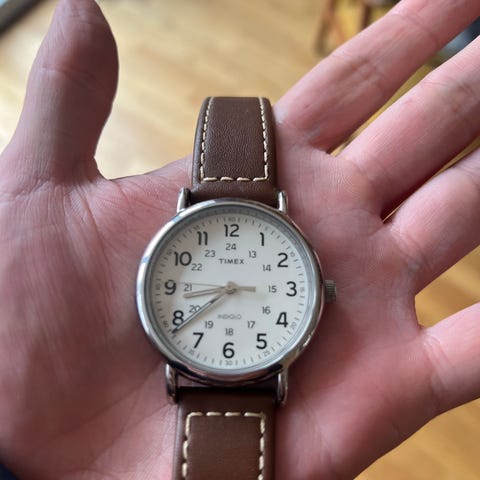 Selger for 250kr + frakt en veldig lite brukt Timex quartz water resistant klokke med elastisk reim som betyr at det passer alle typer håndleddene. Trenger ny batteri!