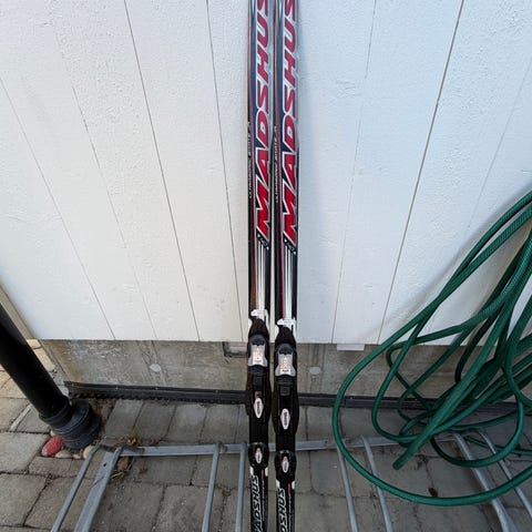 Madshus langrennsski 140 cm med Rottefella-bindinger og Swix skistaver 110cm. Skiene er klassiske langrennsski med NNN Rottefella-bindinger montert. Skia kan også brukes som skøyteski på blanke ski.
