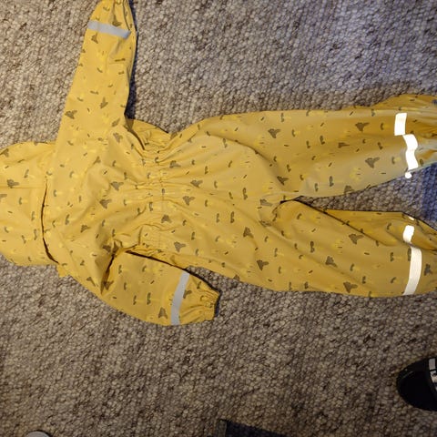 Mye bruk igjen! Mangler fotstrikker, ellers en dress som holder barnet tørr. Tar betaling over vipps og sender gjerne. :)